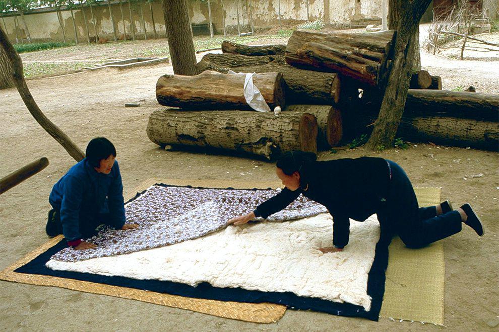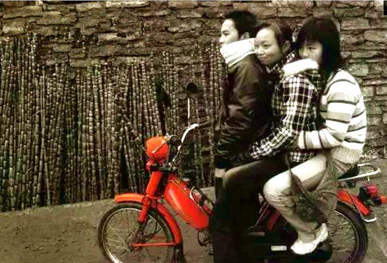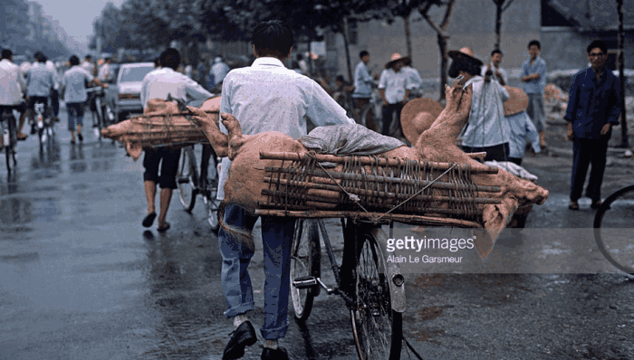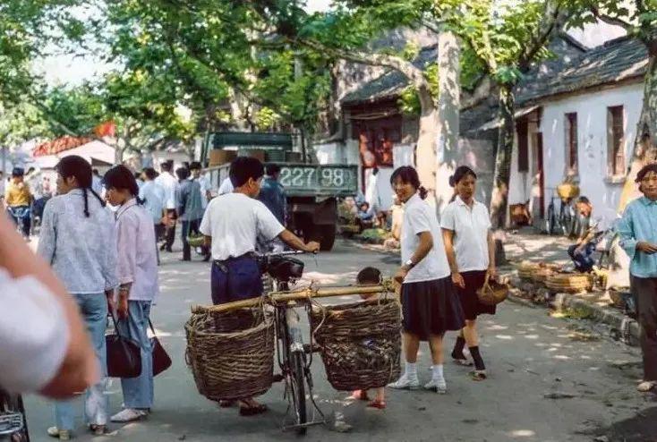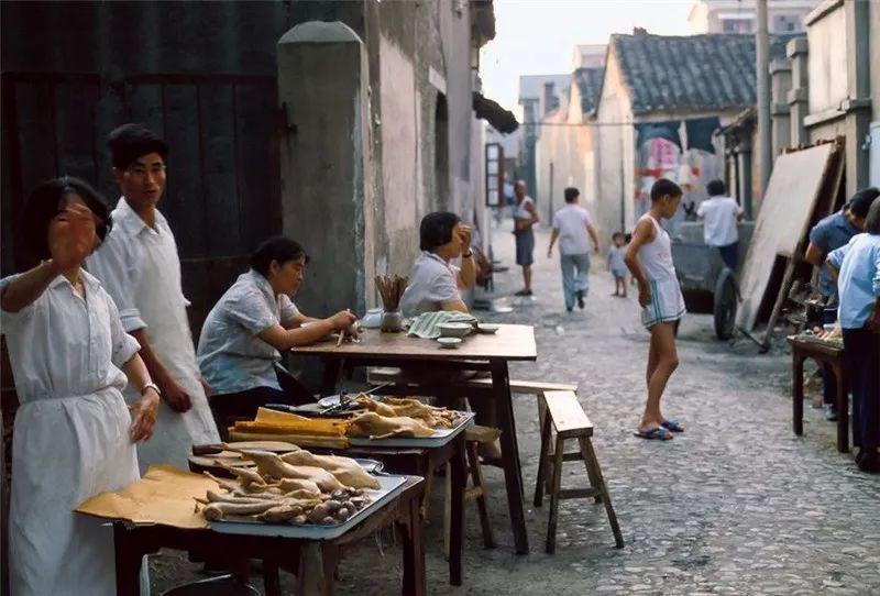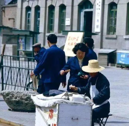 一些大妈大爷推着一辆白色木推车卖冰棍,